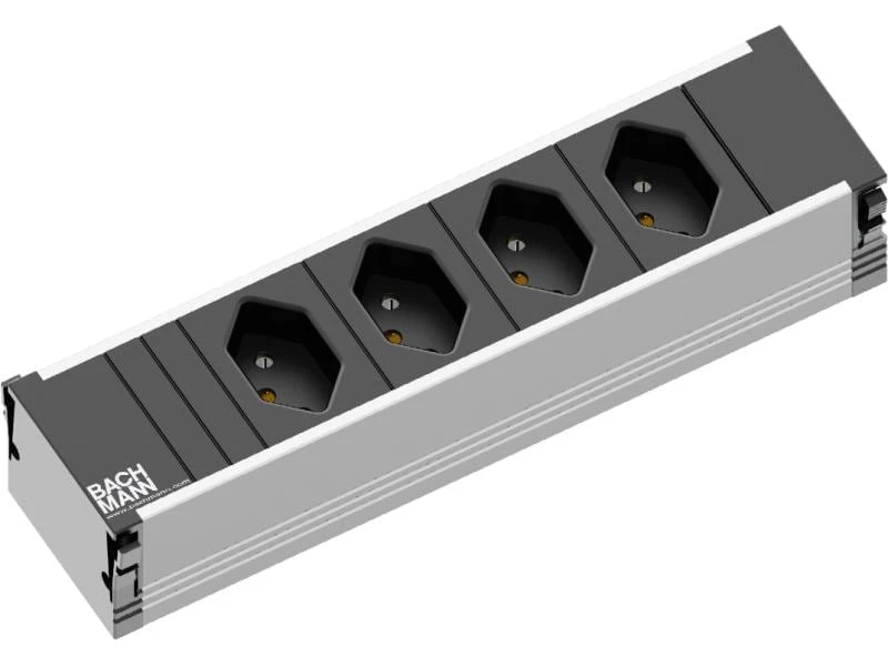 Die Steckdosenleiste CONI in dieser Ausführung beinhaltet 4 Buchsen vom Typ T13. Die Steckdoseneinheit verfügt über keine Leerfelder für Custom Modules.